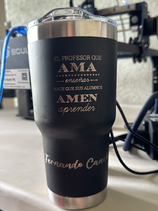 Puedes elegir personalizar tu termo con grabado láser o en vinil con hasta 2 colores, por un lado.